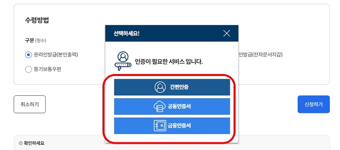저는 요새 공동인증서나 금융인증서를 별도로 들고 다니지 않아서 간편인증으로 했어요.