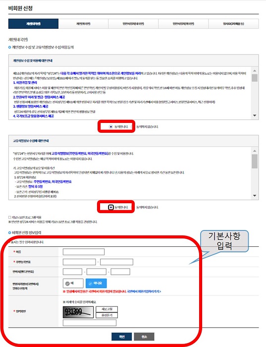 위의 화면처럼 개인정보 제공 동의를 하라고 하고