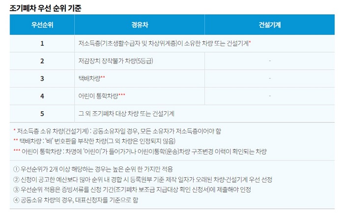 참고로 조기폐차 신청에 우선순위가 있습니다.