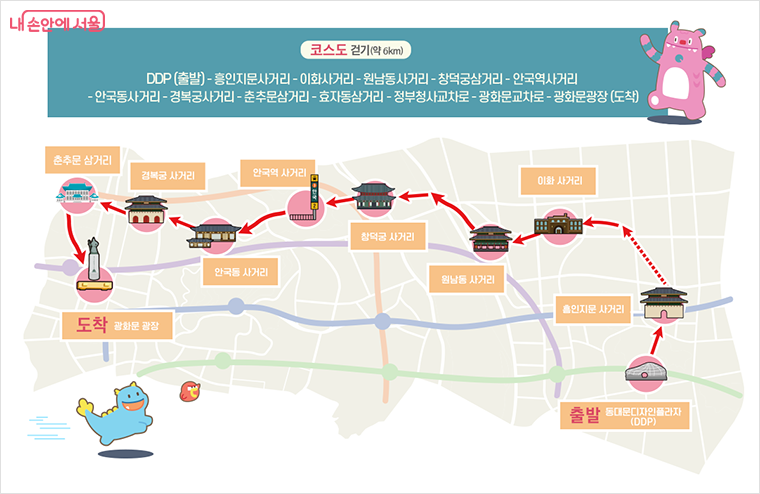 출발 지점인 DDP에서 광화문광장까지 중간중간에
