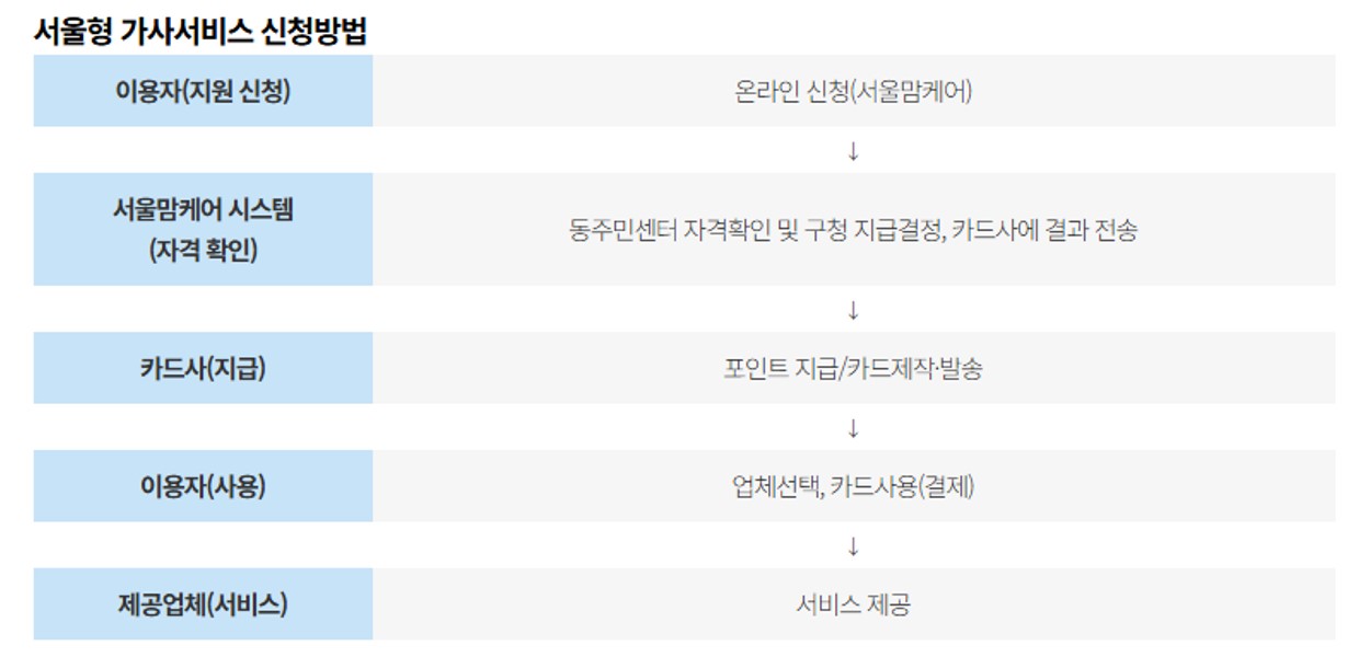 ○ 방 법 : 서울형 가사서비스 제공기관으로 선정된 업체에 바우처 결제, 차감