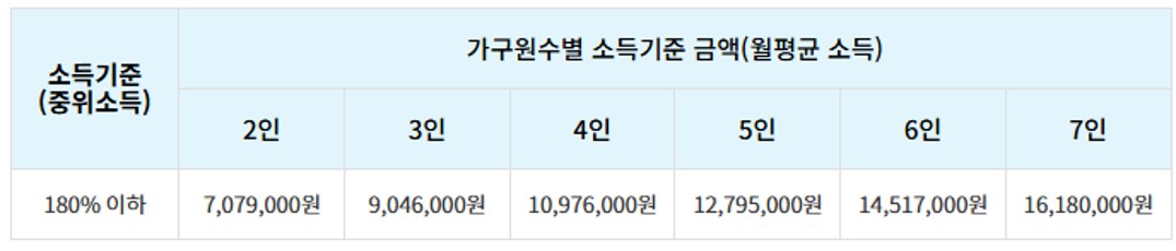 중위소득 150% 이하에서 180% 이하로 완화했다고 하네요